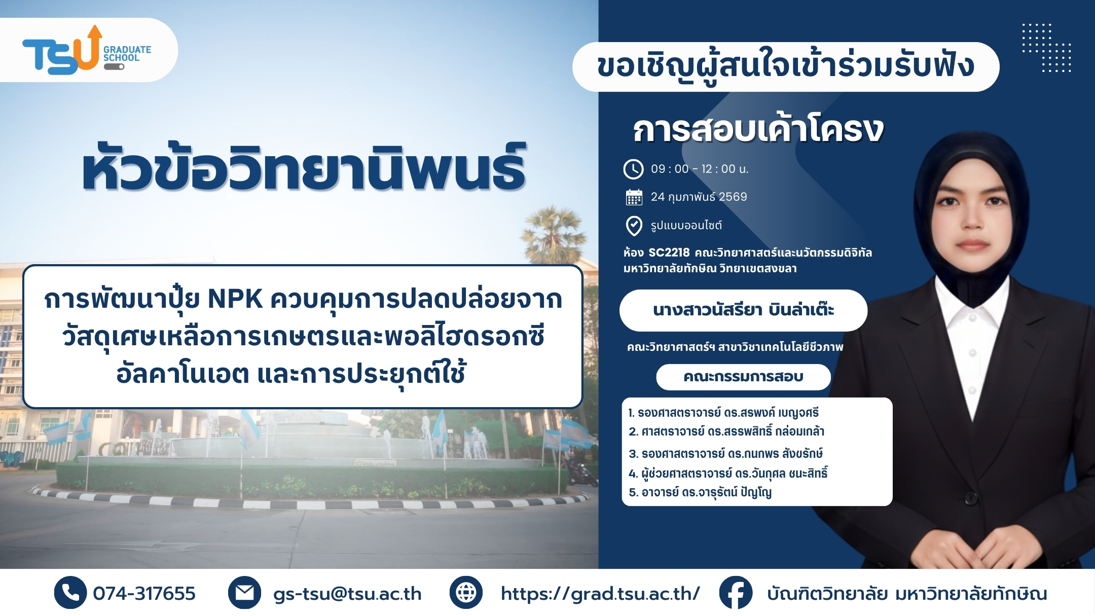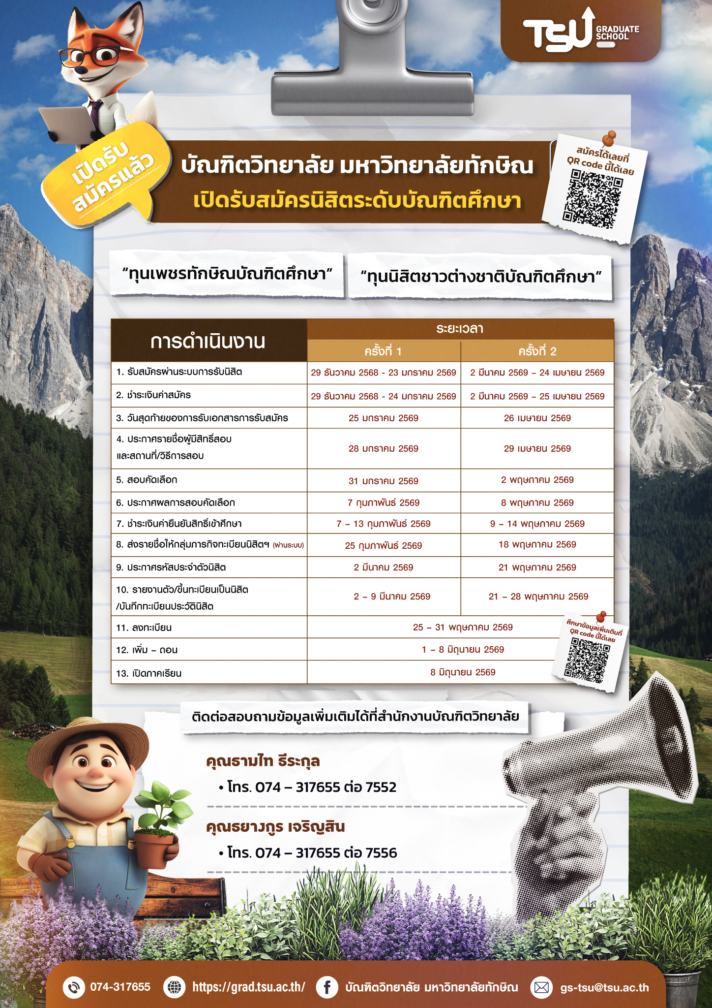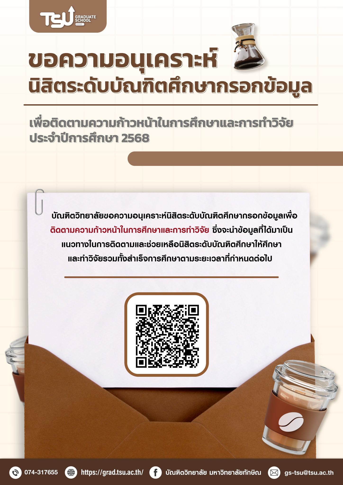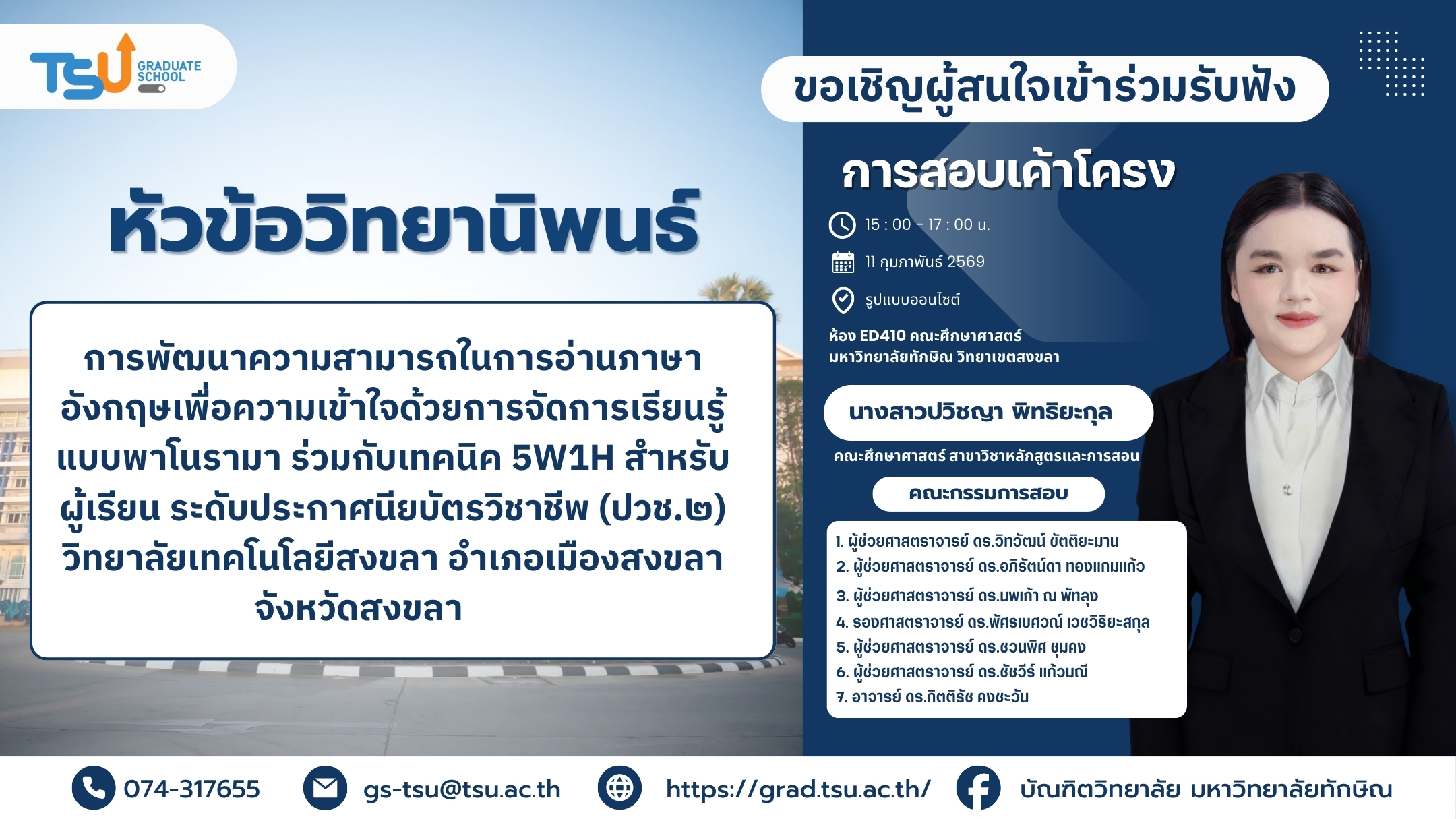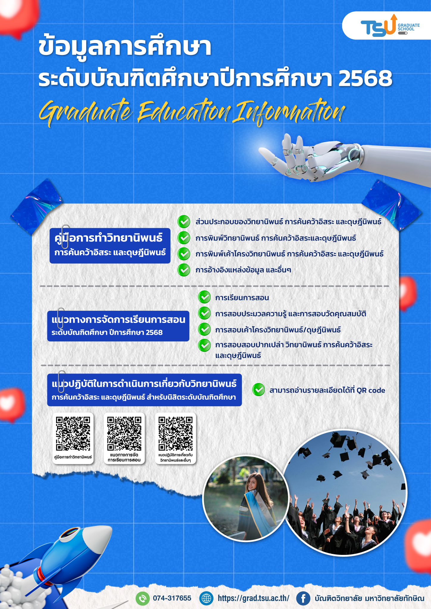 แบบสอบถามความพึงพอใจการให้บริการของบัณฑิตวิทยาลัย มหาวิทยาลัยทักษิณ ประจำปีการศึกษา 2568