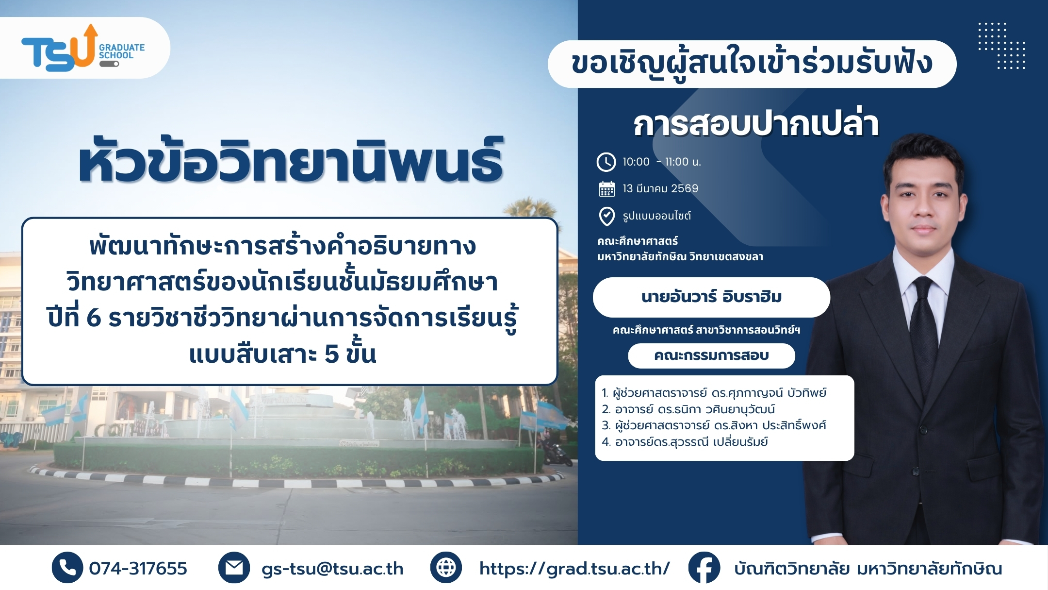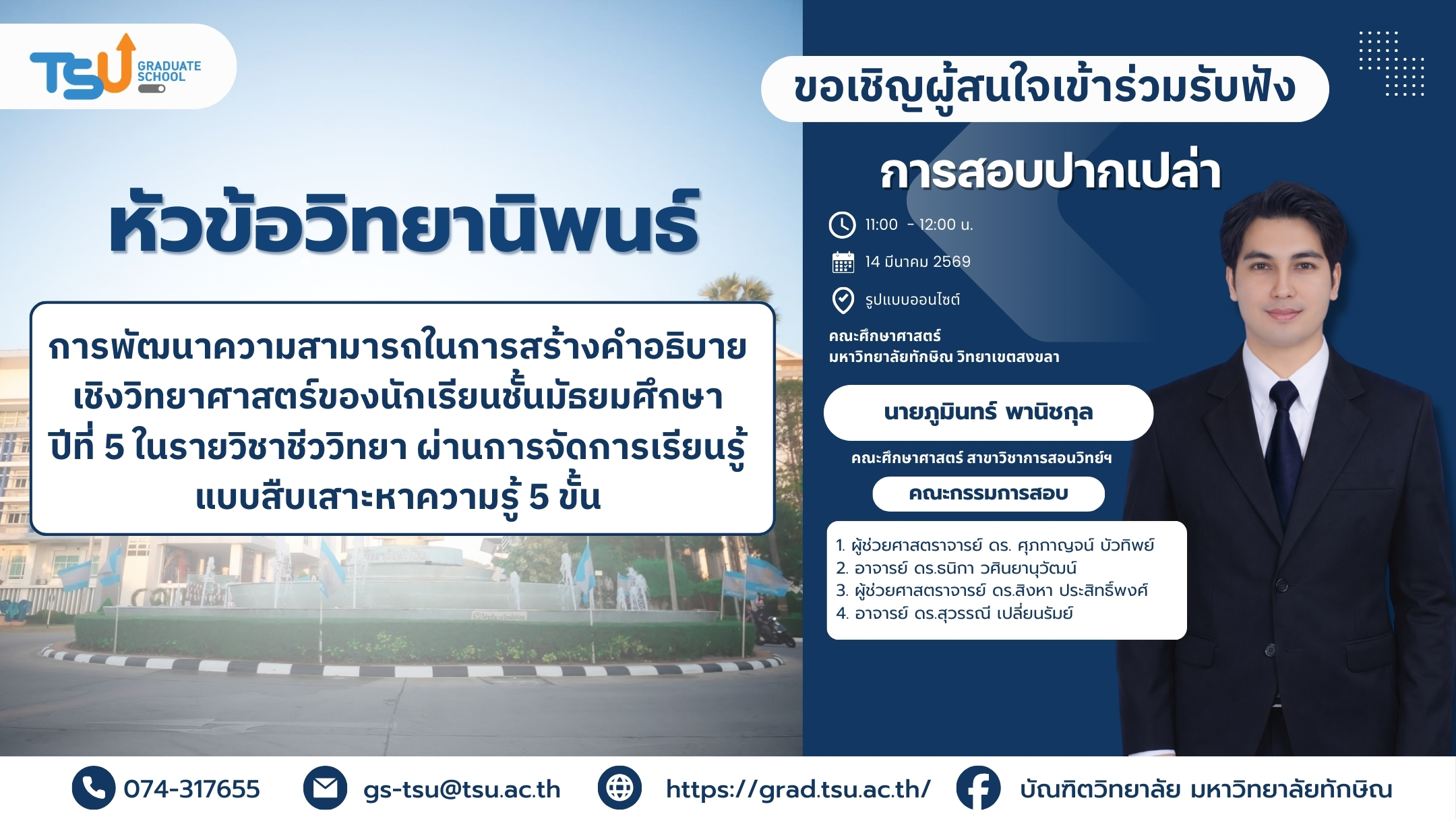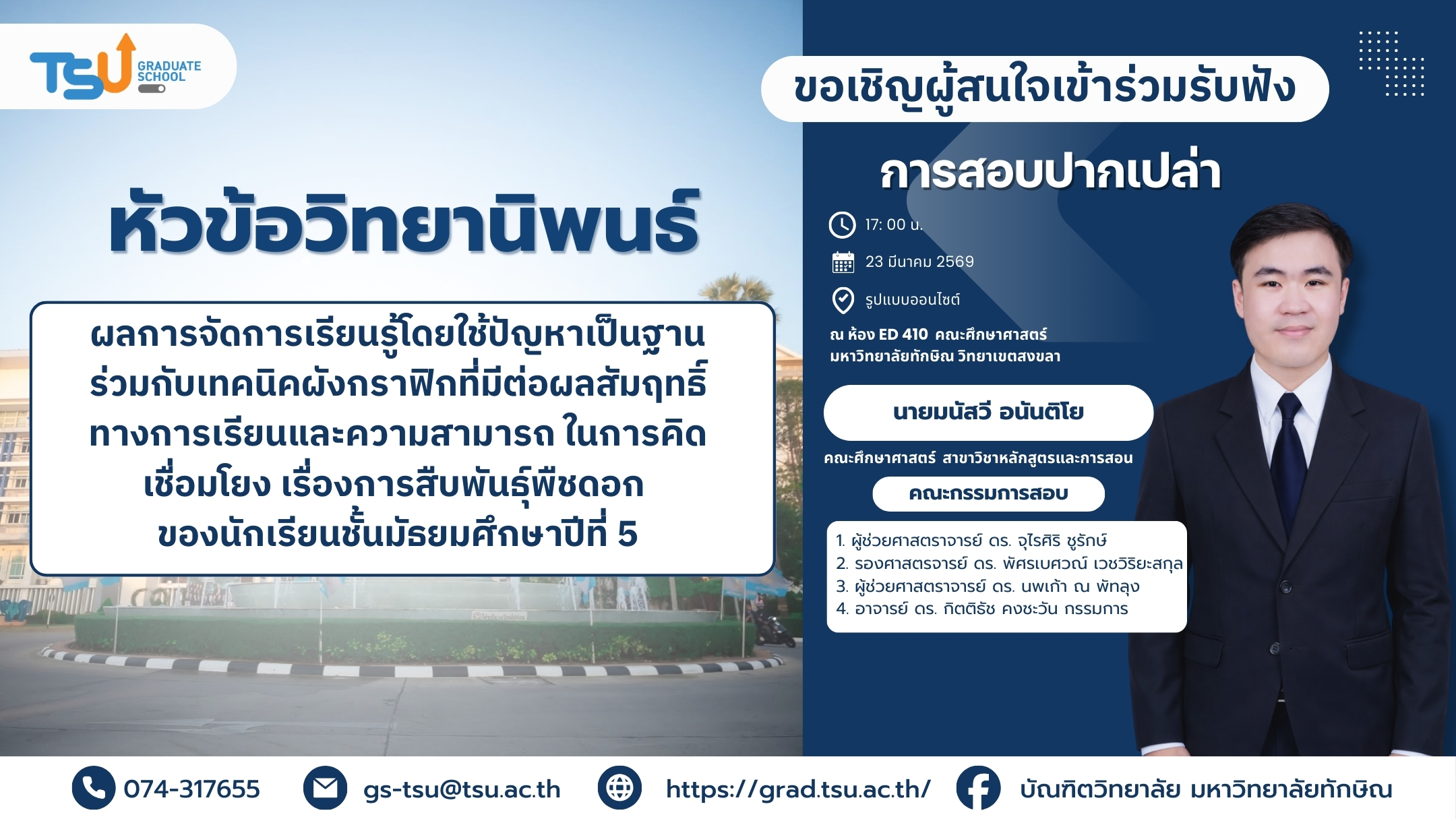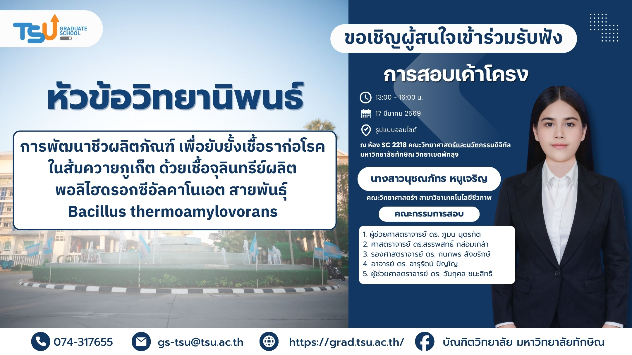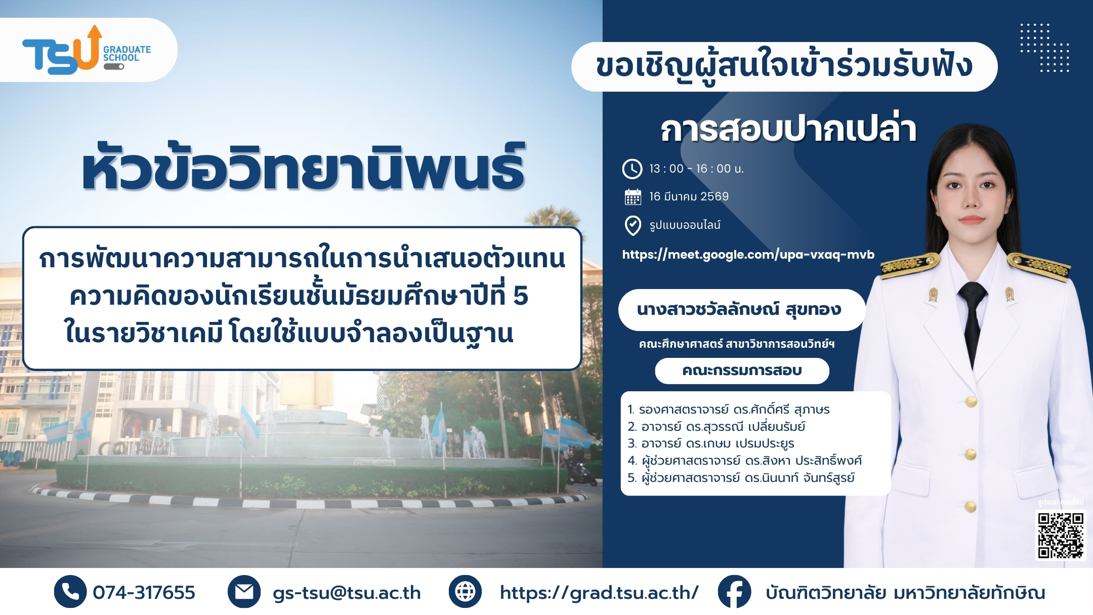 แบบสอบถามความพึงพอใจการให้บริการของบัณฑิตวิทยาลัย มหาวิทยาลัยทักษิณ ประจำปีการศึกษา 2568