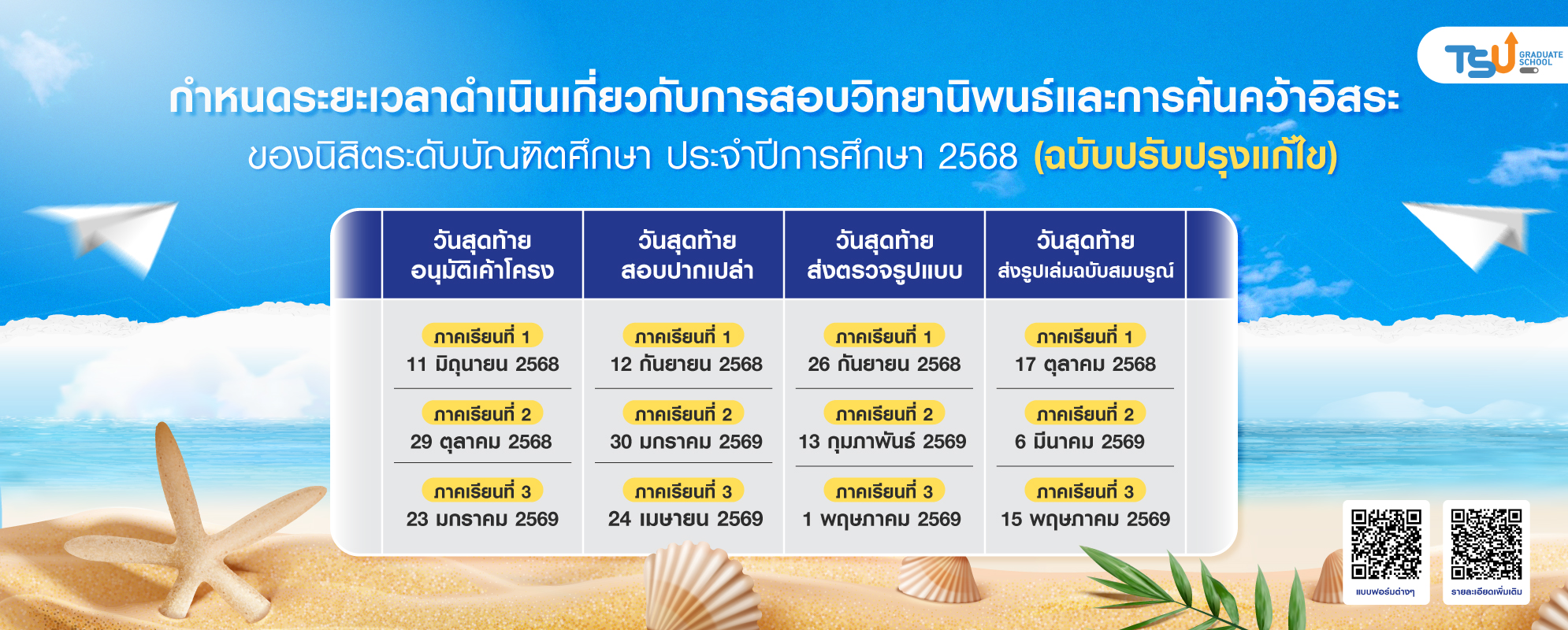 การสอบวิทยานิพนธ์และการค้นคว้าอิสระ ของนิสิตระดับบัณฑิตศึกษา ประจำปีการศึกษา 2568