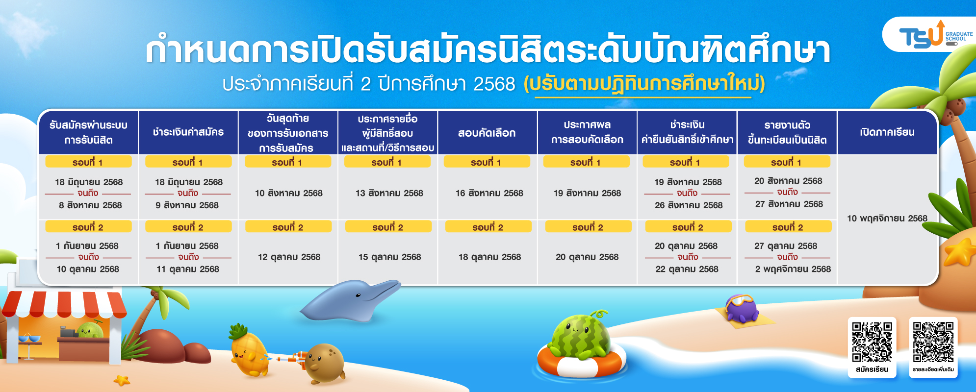 กำหนดการเปิดรับสมัครนิสิตระดับบัณฑิตศึกษา ประจำภาคเรียนที่ 2 ปีการศึกษา 2568