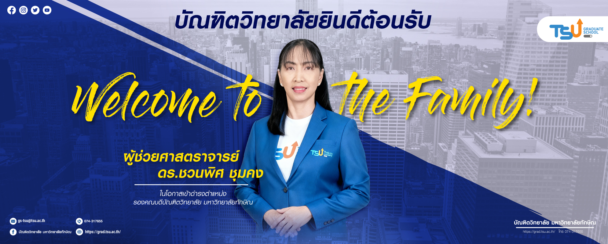 บัณฑิตวิทยาลัย มหาวิทยาลัยทักษิณ ขอแสดงความยินดีกับ ผู้ช่วยศาสตราจารย์ ดร. ชวนพิศ ชุมคง ในโอกาสเข้าดำรงตำแหน่ง รองคณบดีบัณฑิตวิทยาลัย อย่างเป็นทางการ
