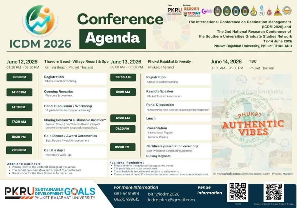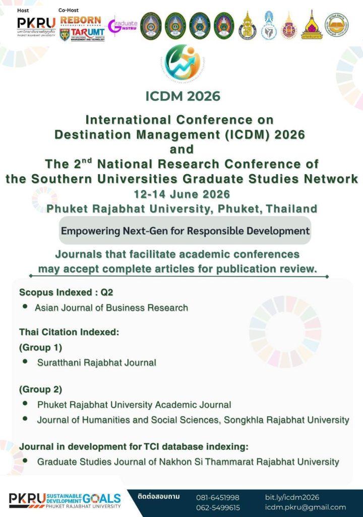 Organized by the Faculty of Management Sciences, Phuket Rajabhat University, this conference aims to foster academic exchange and strengthen research capacity in responsible and sustainable destination management at both international and national levels.