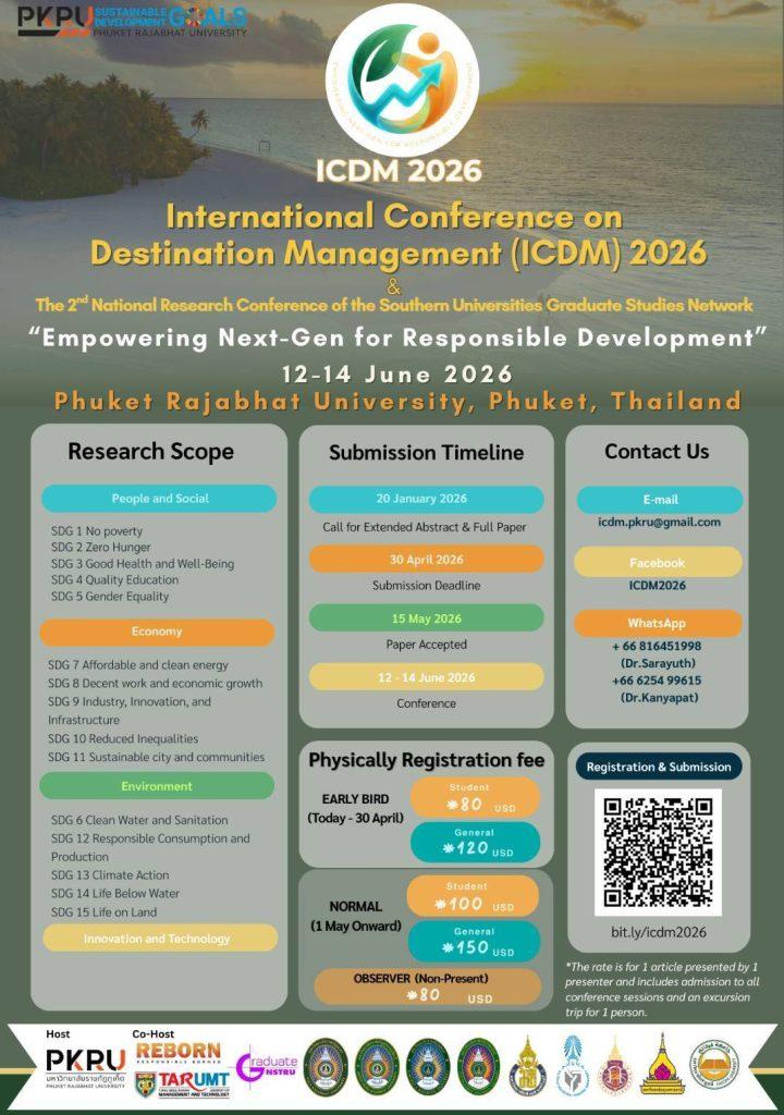 International Conference on Destination Management 2026 (ICDM 2026) and The 2nd National Graduate Research Network Conference, Southern Universities